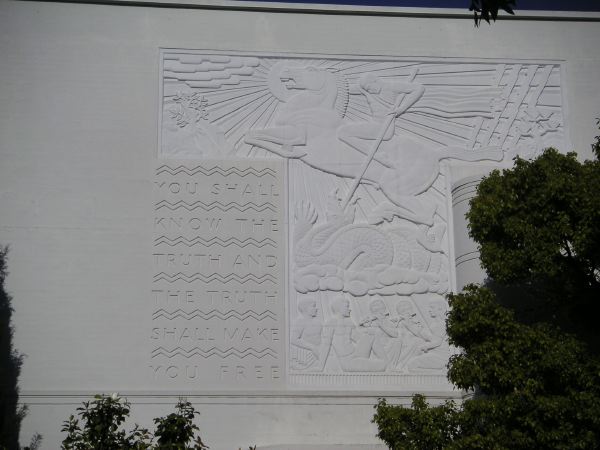 Sur le chemin pour l'université, la façade du Lycée de Berkeley: "You shall know the truth and the truth shall make you free".